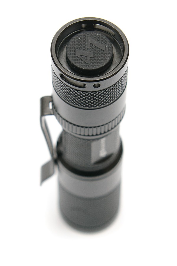 The tailcap of the regular Quark AA features a reverse push-button switch, which is guarded by a rim. This rim makes it possible to stand the Quark AA up on the back end – a handy feature if you ever need to put the light down and bounce the beam off the ceiling.